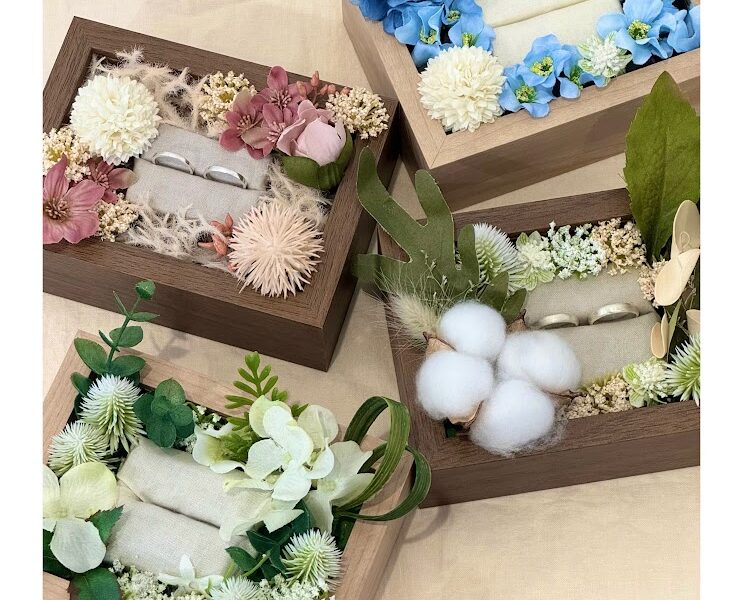 完成したリングはスタッフが作ったフラワーボックスに入れてお出しします⊹₊。ꕤ˚₊⊹