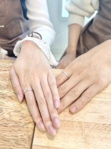おふたりとも甲丸リングにツヤのある加工になっています!