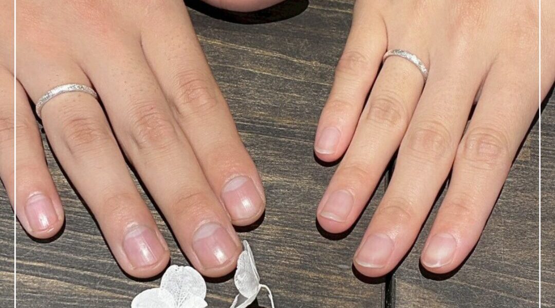 どちらもおそろいの甲丸リングに、キラキラの表面加工で仕上げております✨