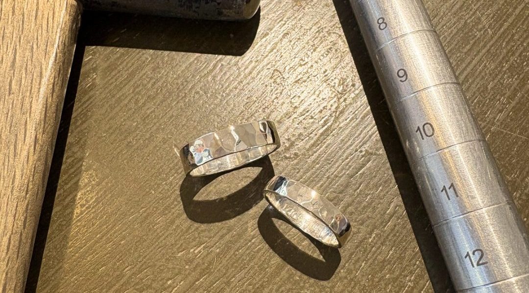 リングをハンマーで叩いて模様をつけていただきます✨️
