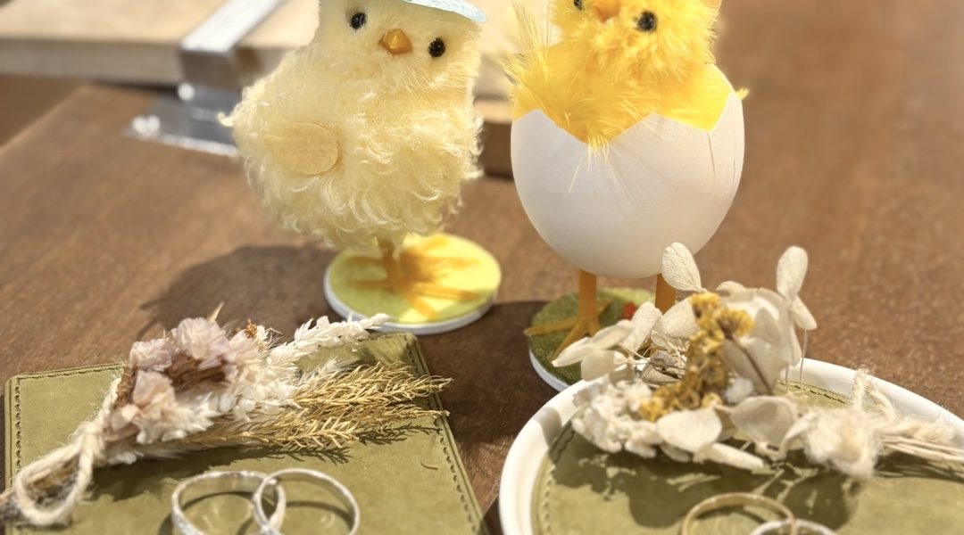 現在横浜店ではかわいいヒヨコたちが指輪をお届けしております✨