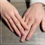 アカネス東京です。こちらお客様がご制作されたリングのお写真です💍お二人とも、平打ちのグリッター加工でご製作されました…